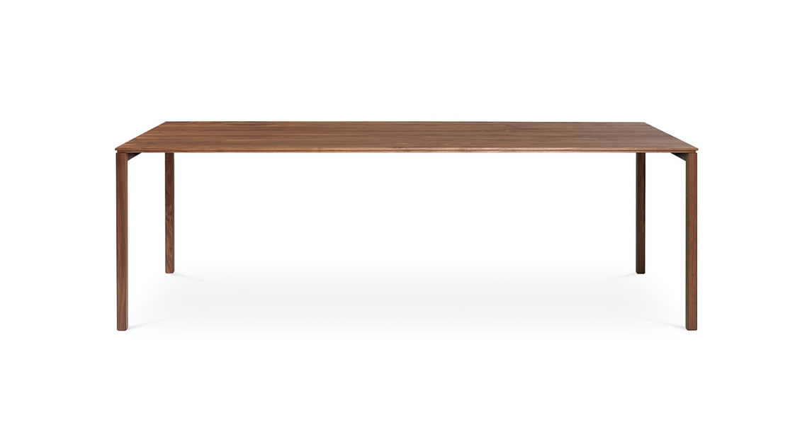 De poten zijn zeer verfijnd en op de lange zijdes lijkt het of het blad verder niet ondersteund wordt. Door de slimme onderhuidse metalen constructie kan deze tafel tot 300cm lengte zonder extra ondersteuning gemaakt worden.